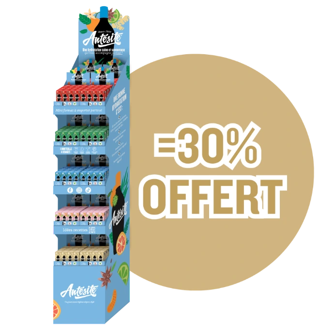 Pour l'achat d'un meuble contenant 20 prêts à vendre (PAV) de 16 codigouttes chacun (soit 320 codigouttes), vous bénéficierez de 30% de réduction + le meuble offert